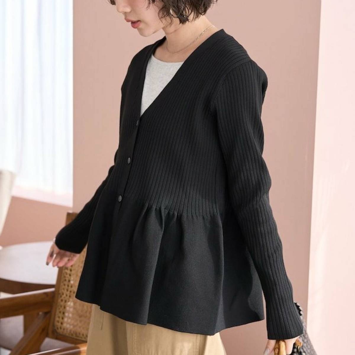 メリハリスタイルに見せることができるペプラムカーディガン。