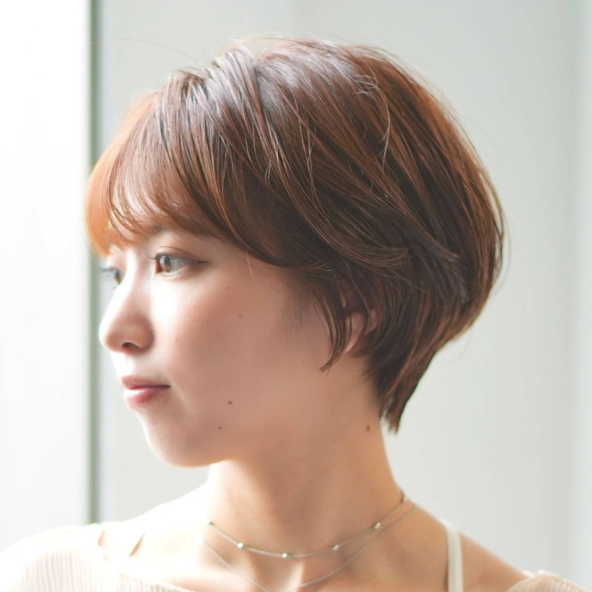 【2026年2月】老け顔さんに◎前髪ありショート▶アースカラーの前下がりショート