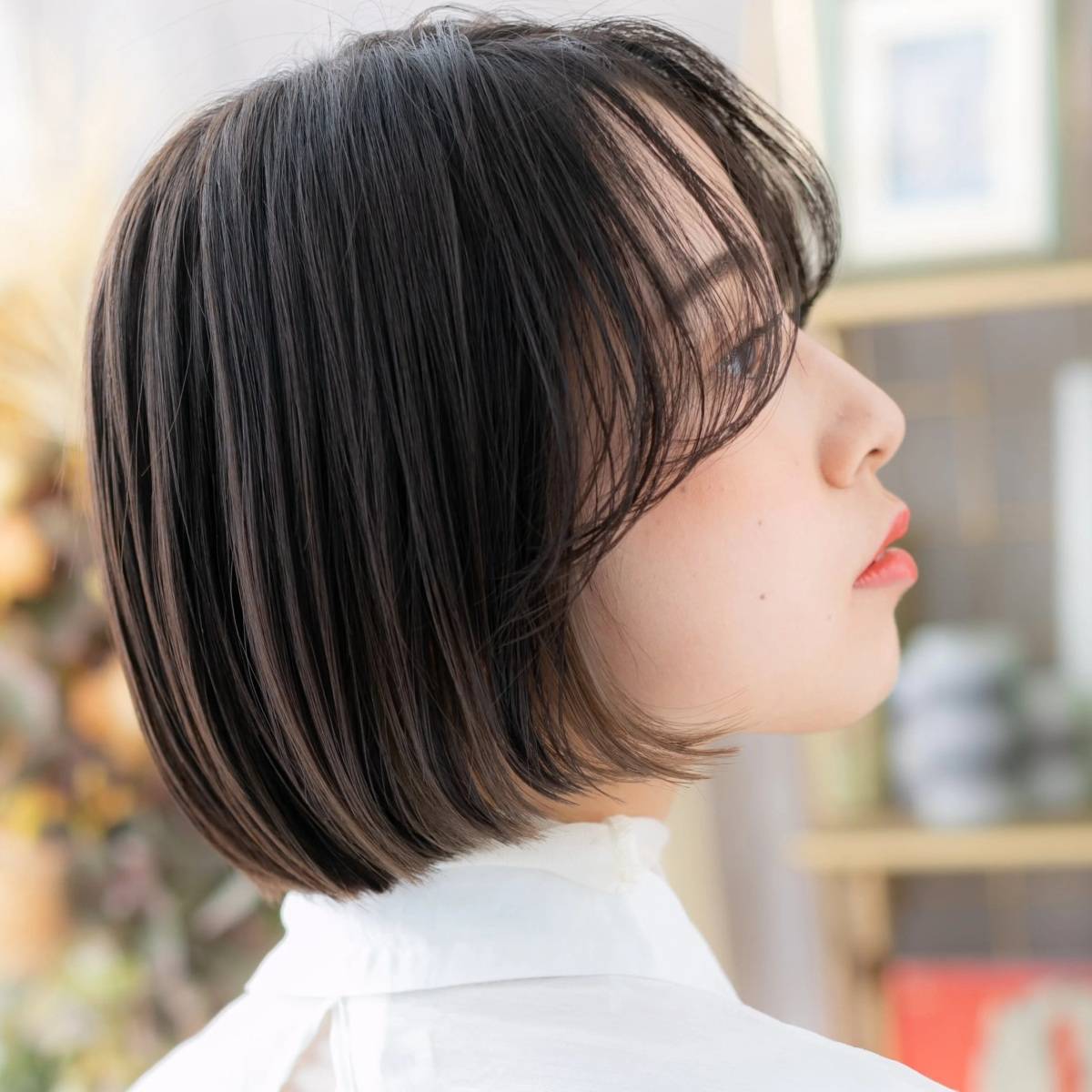 前髪を作らないボブなら、少し髪が伸びても気にならないので、メンテが楽!