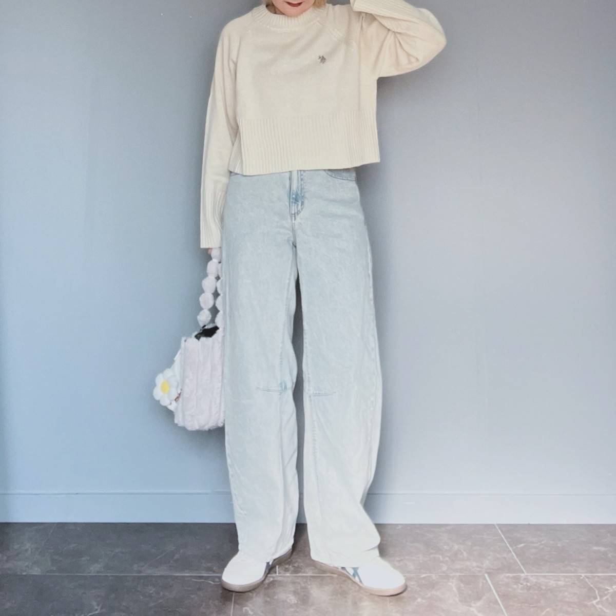 【真冬編】大人可愛いデニムパンツコーデ⑤白×ライトブルー