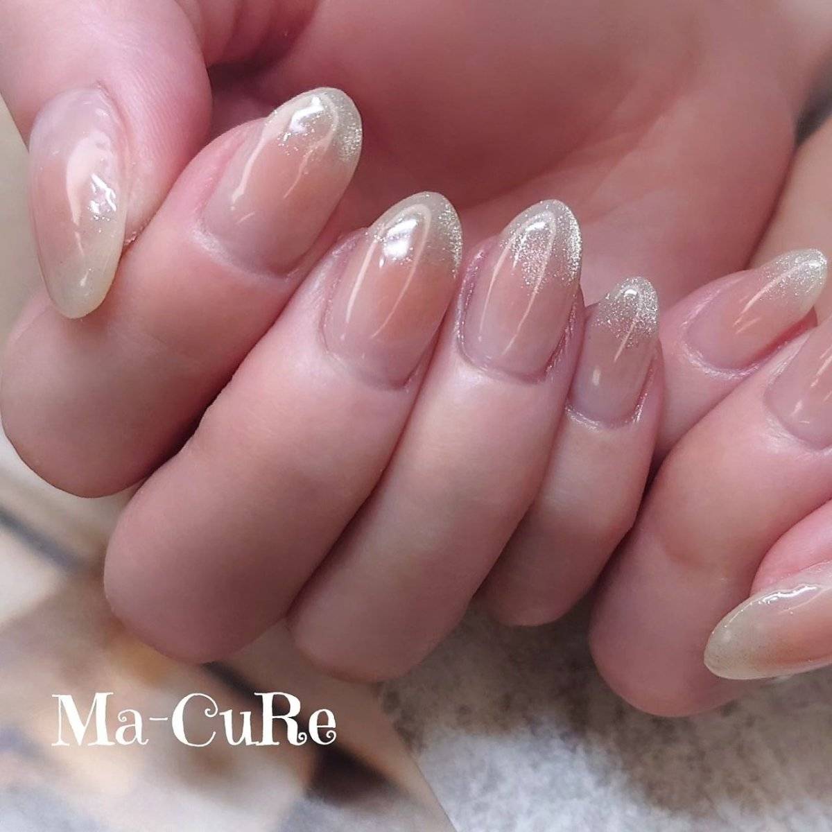 近い色ですが、淡く透明感のあるベージュネイルが良いアクセントになり、春の訪れを感じられる手元になるでしょう。