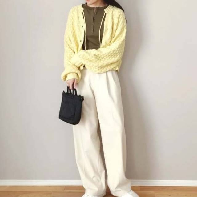 春を感じさせるレモンイエローのカーディガンを主役にすれば、4月もおしゃれを楽しめますよ♪