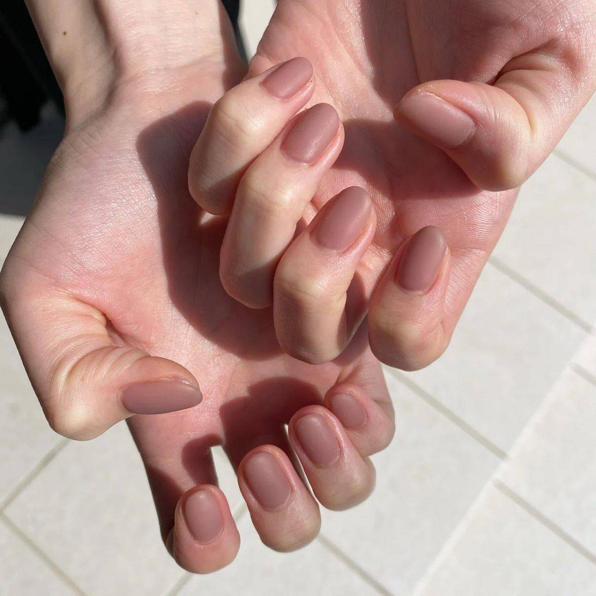 大人女子にとくにおすすめしたいのが、ピンクブラウンワンカラーのシンプルなマットネイル♪