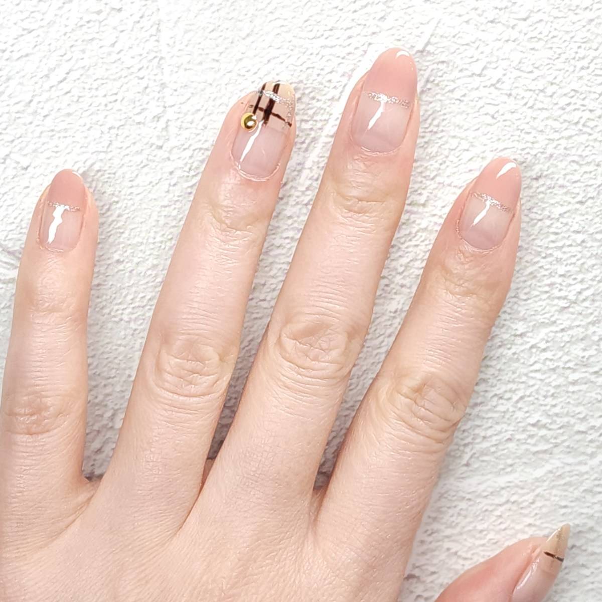 爪の半分にだけ描くチェック柄なので、時短でおすすめ。