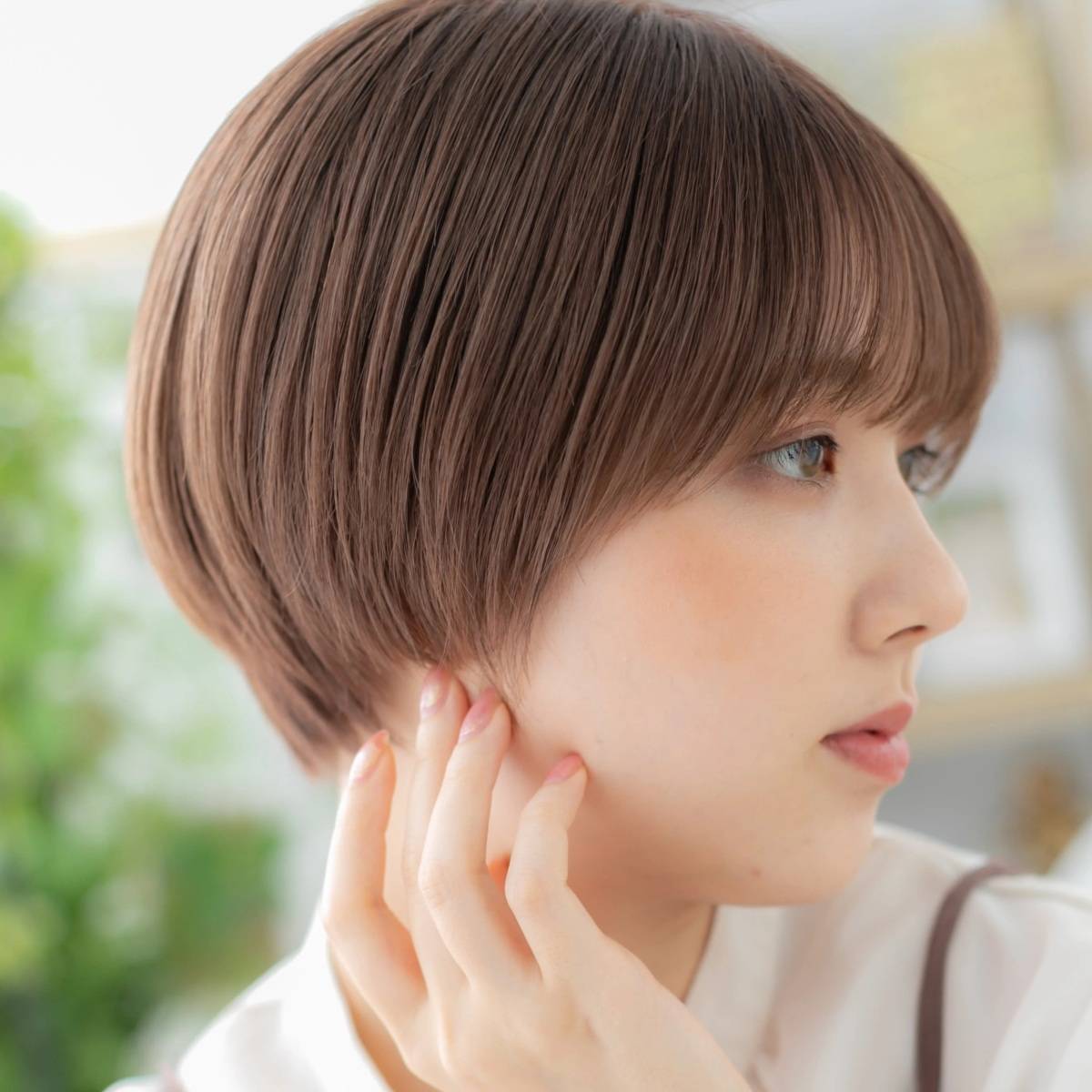 コンパクトなマッシュベースのショートヘアは、シルエットに丸みがあり、可愛らしく見えます。