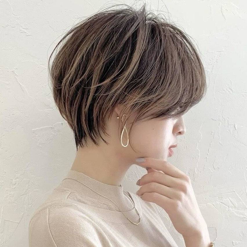 襟足長めのショートヘアは縦のラインを強調できるため、顔のぽっちゃり感が目立ちにくくなります。