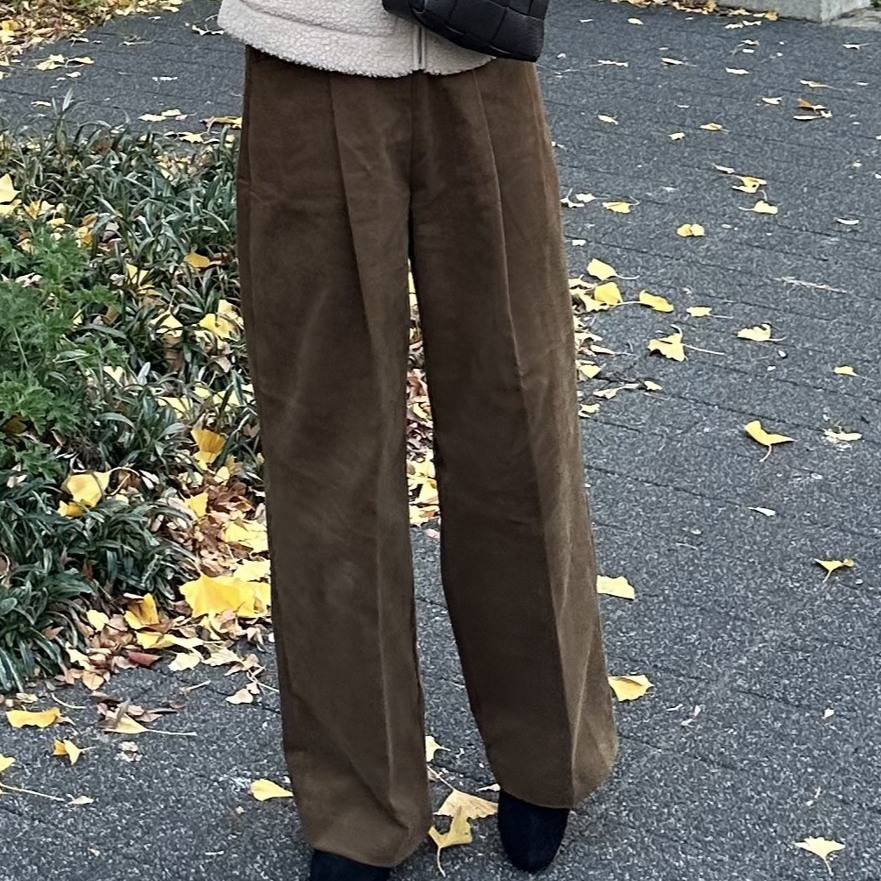 微起毛したブラッシュド素材が品のある表情を生み、肌触りのよさと抜け感のあるシルエットで履き心地も快適です◎