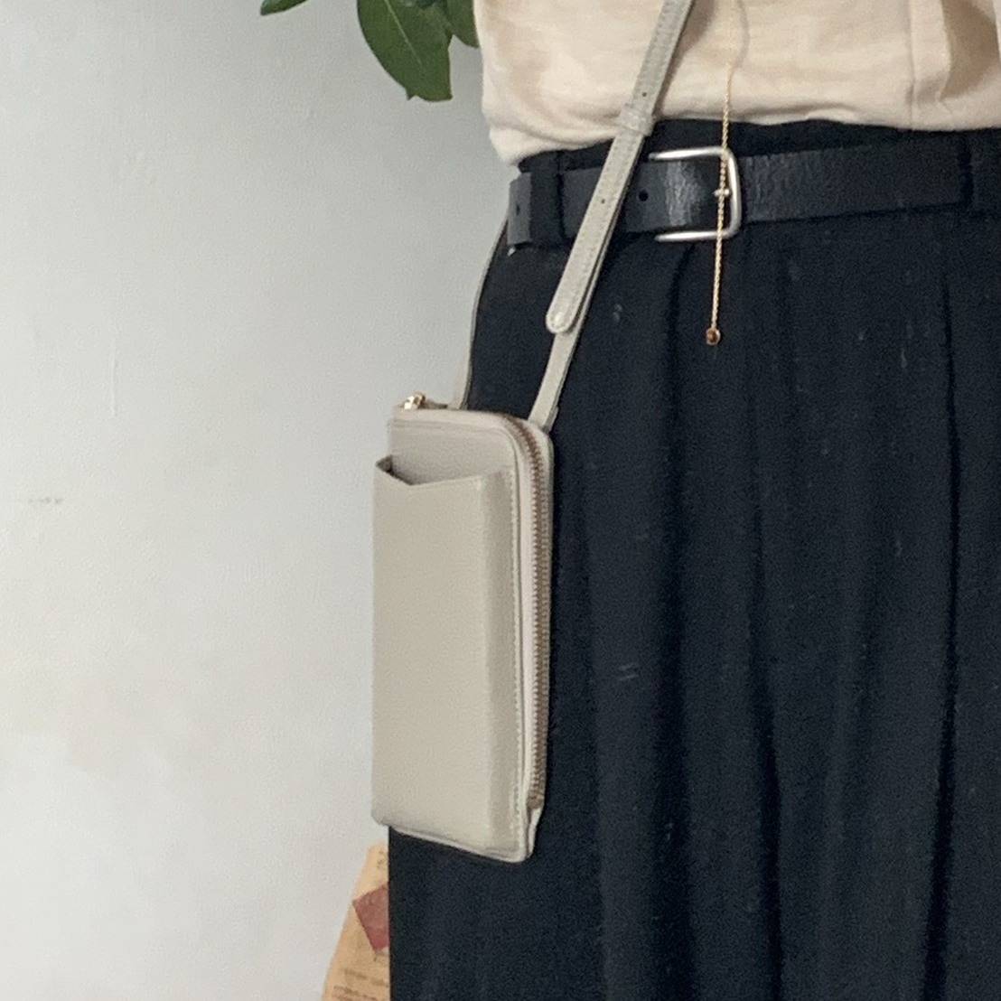 L字型ファスナーで開閉がスムーズ、スマホやカード、リップなど必要なものがコンパクトに収まり、ストレスフリーな収納力を発揮✨