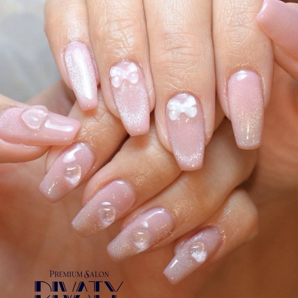2026年は、人気のリボンパーツや、氷アートを重ねて、ネイルを主役にするデザインもおすすめです。