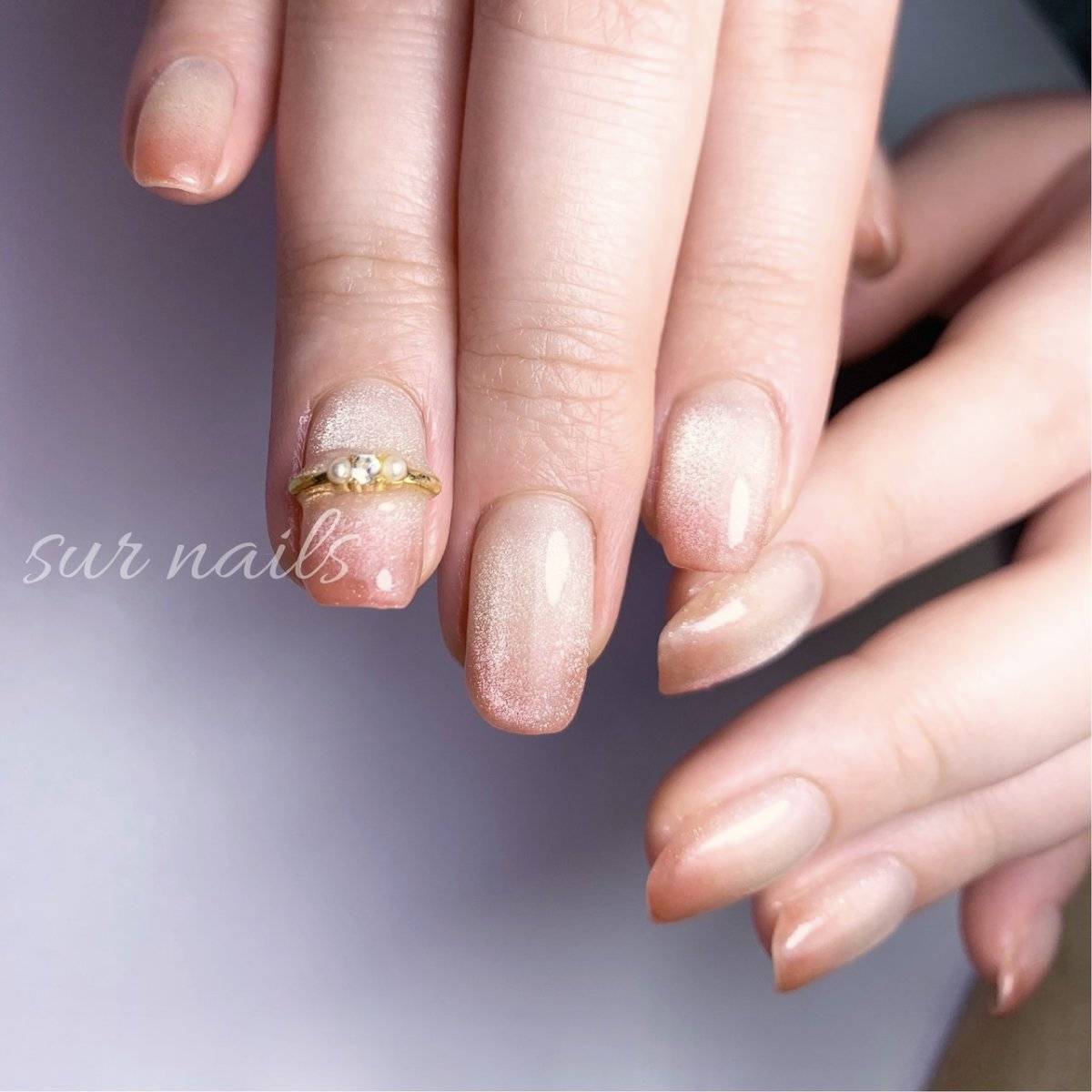 マググラデーションだけでもおしゃれですが、ワンポイントにリングネイルをプラスすると良いアクセントになってくれます。