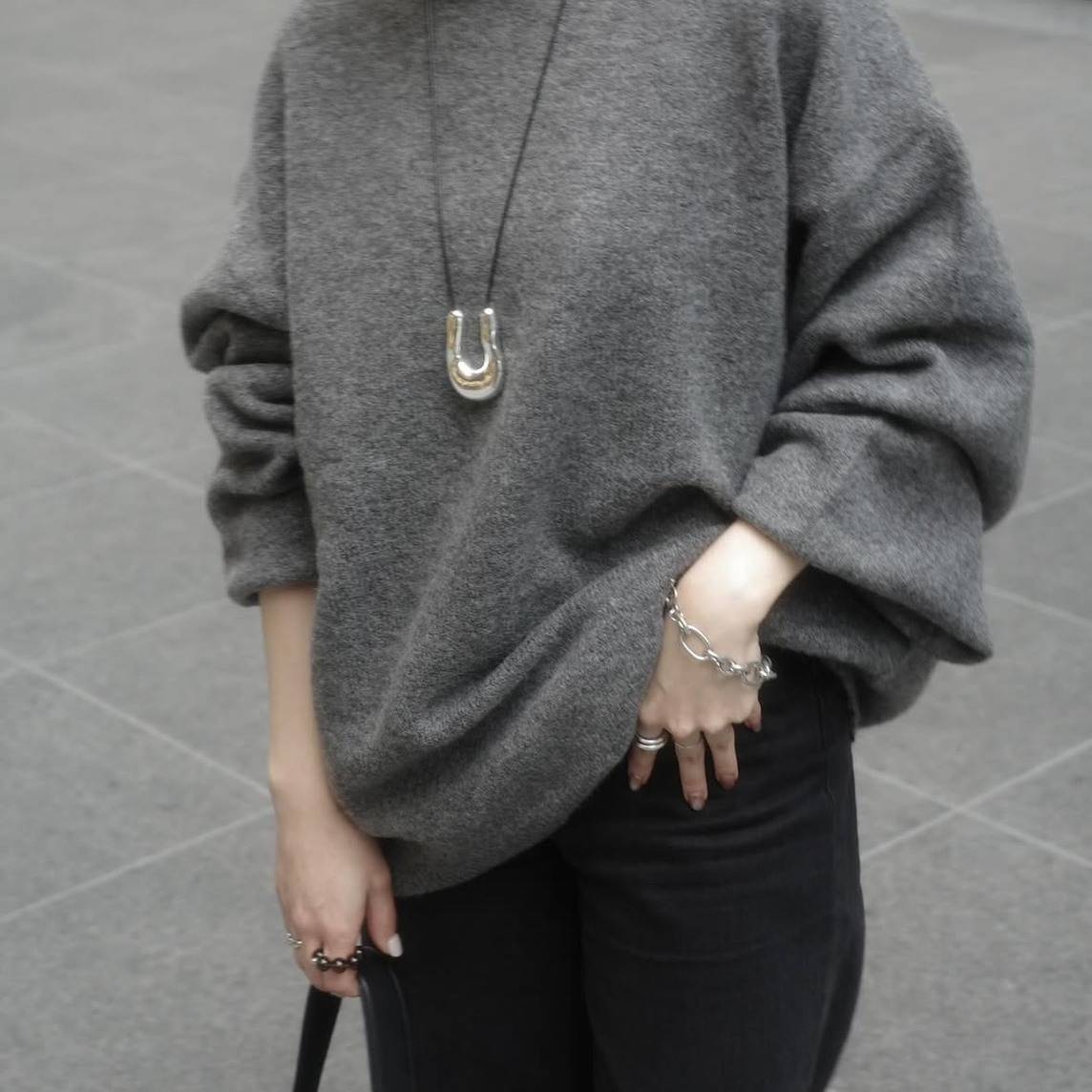 ニュアンスのあるグレーがどんなカラーとも相性よく、デニムでカジュアルに、スカートでフェミニンにも自在にシフト✨