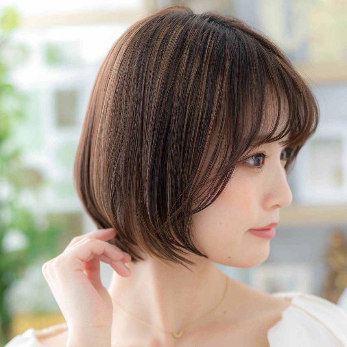 老け顔さんは、チョコブラウンやダークブラウンなどツヤが出やすいカラーのボブにしましょう。