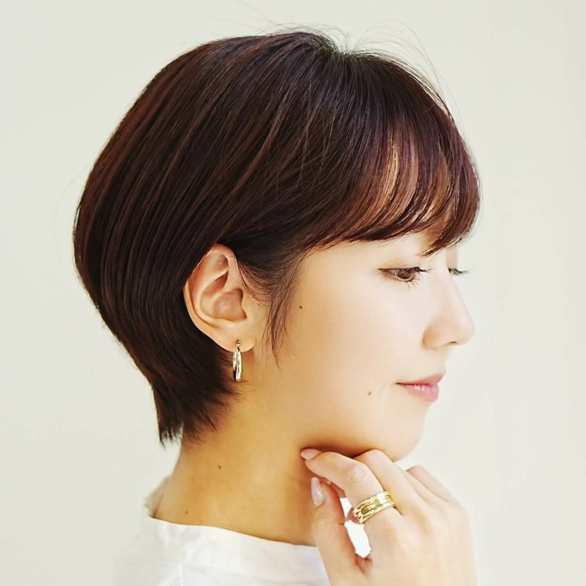 前下がりシルエットのショートヘアは、輪郭がすっきりシャープに見えるので、顔の大きさや丸さをカバーしたい方におすすめ♪