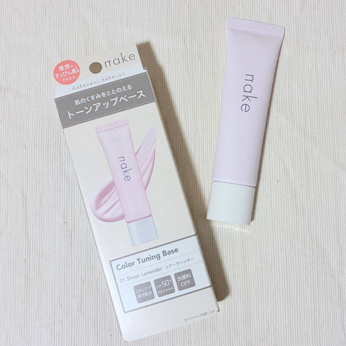 nake(ネイク)「カラーチューニングベース」〈01 シアーラベンダー〉は、肌にやさしい処方と高いUVカット効果(SPF50+ / PA++++)が魅力のUV下地です。
