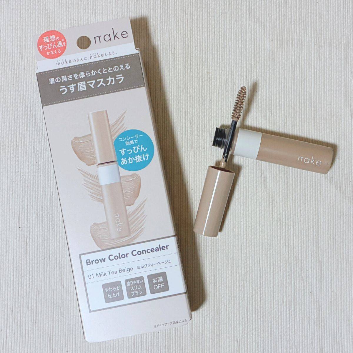 nake(ネイク)「ブロウカラー コンシーラー」は、2026年2月現在〈01 ミルクティーベージュ〉1色展開のみの眉マスカラです。