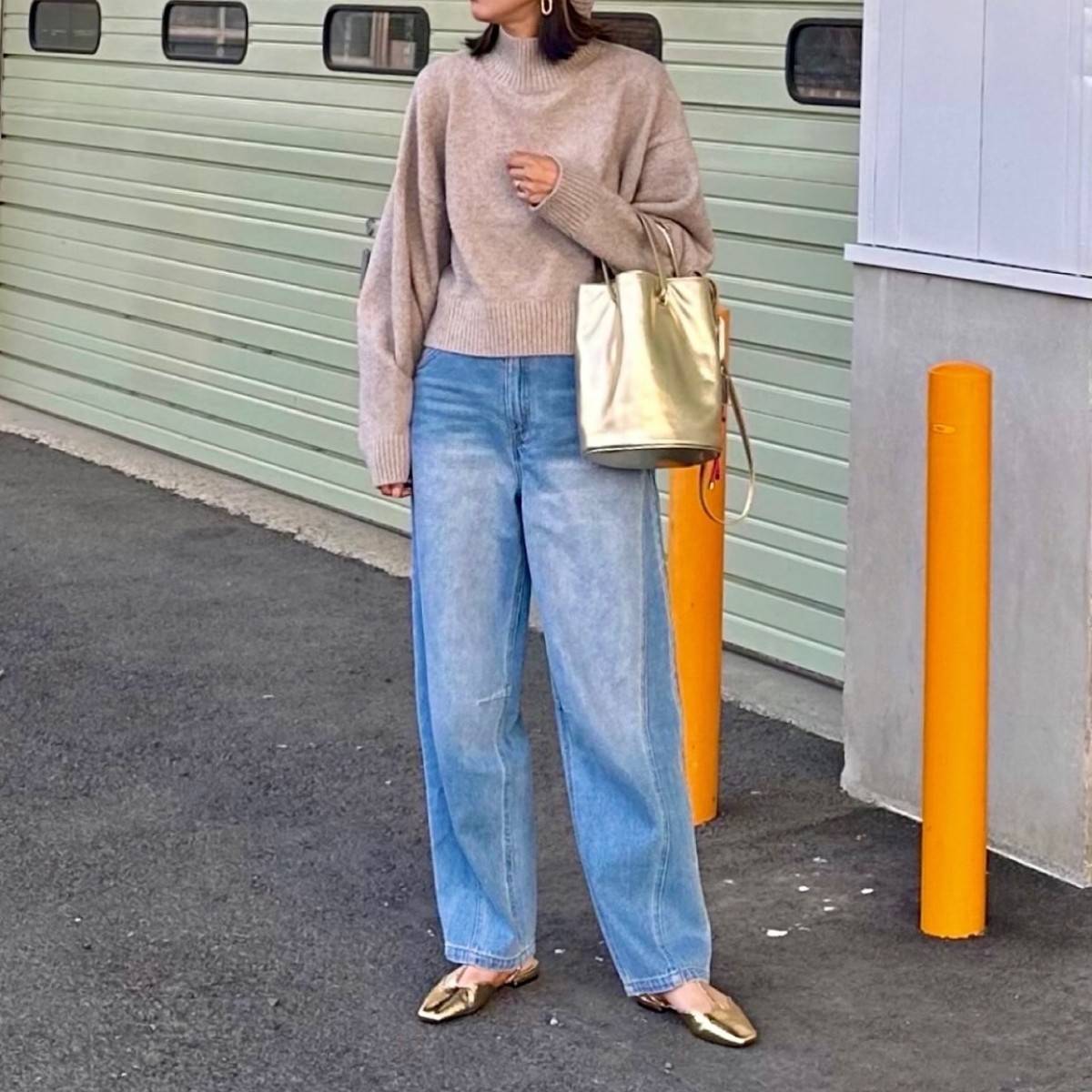 【2月編】老け見えしないニットコーデ⑤メタリックカラーの小物を取り入れる!