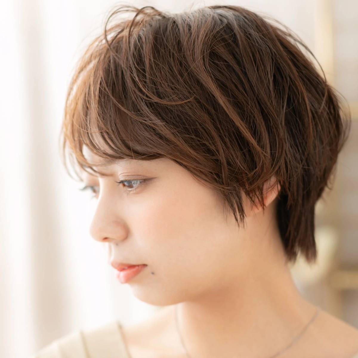 レディなくびれシルエットのショートヘアは、自然なメリハリがあり、若々しく見えます。
