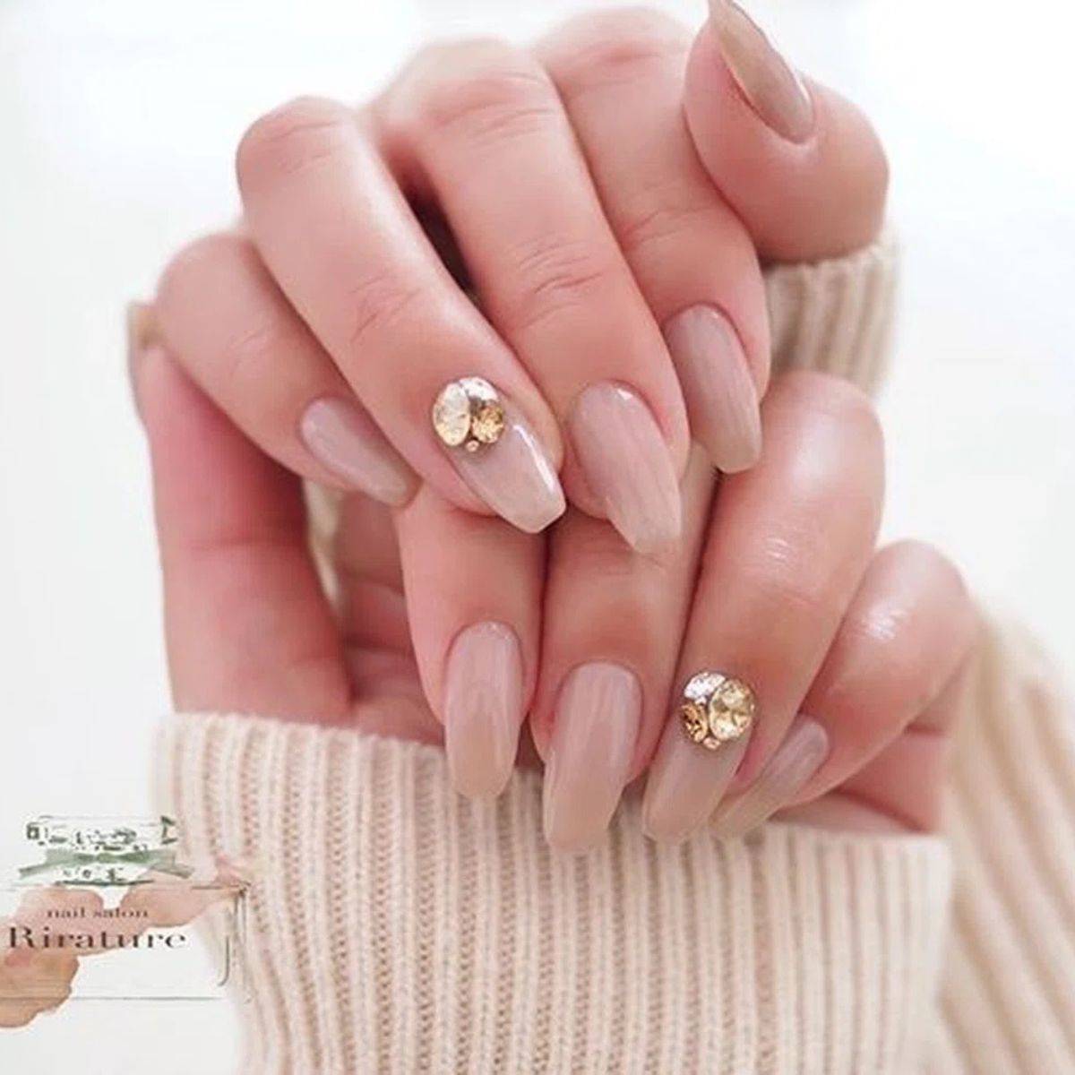 ジュエリーのようなデザインで特別感たっぷりなのが、ビジューをあしらったベージュネイル。