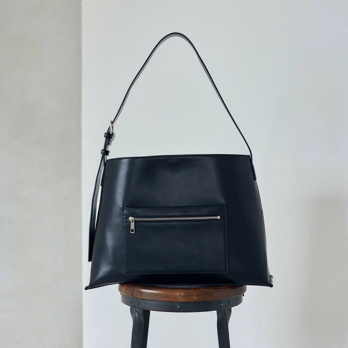 シンプルなデザインのバッグは、合わせやすいので、ひとつあると便利♪