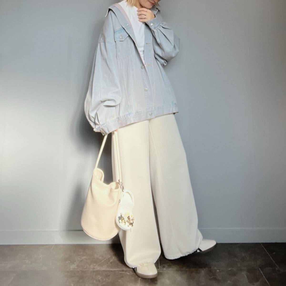 デニムジャケットとワイドパンツのカジュアルコーデは、今っぽくて初春のお出かけにピッタリ♪