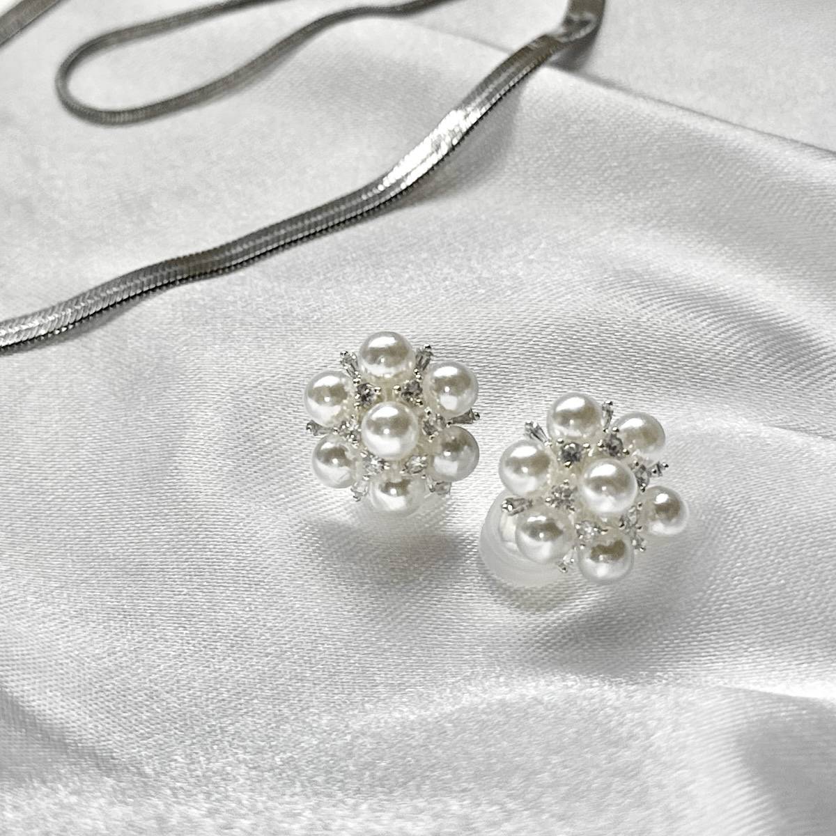 小ぶりなのにきちんと存在感があり、パールとストーンのツヤときらめきが絶妙♪