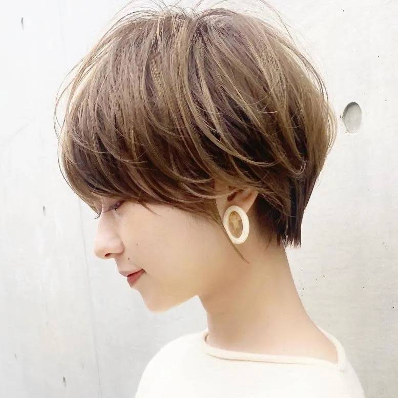 ひし形シルエットのショートヘアはバランスが良く、野暮ったく見えないです。