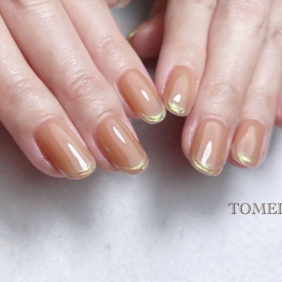 【3月編】おすすめのオレンジベージュネイル▶︎オーロラフレンチを重ねる
