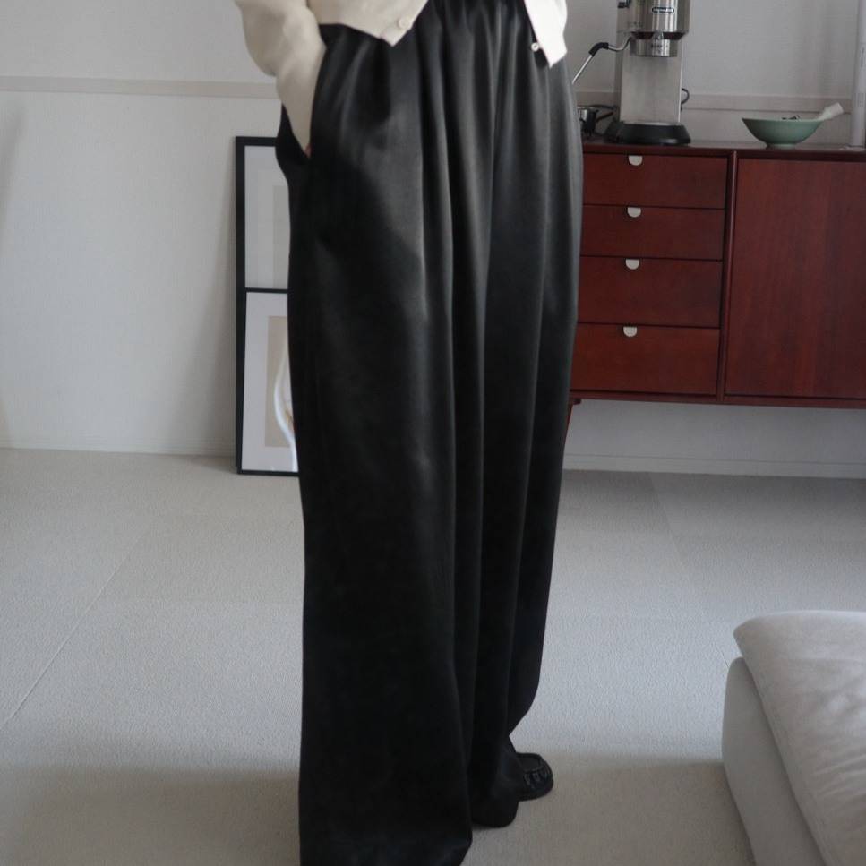 タック入りサテンパンツは、リラックス感と上品さを両立する優秀ボトム🖤