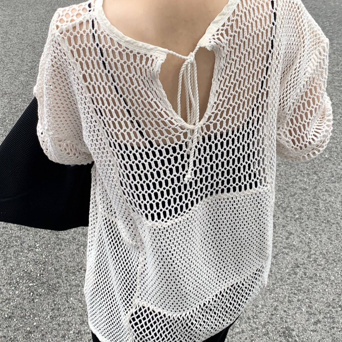 メッシュ透かし編みトップスは、軽やかな抜け感を演出する旬アイテム🤍