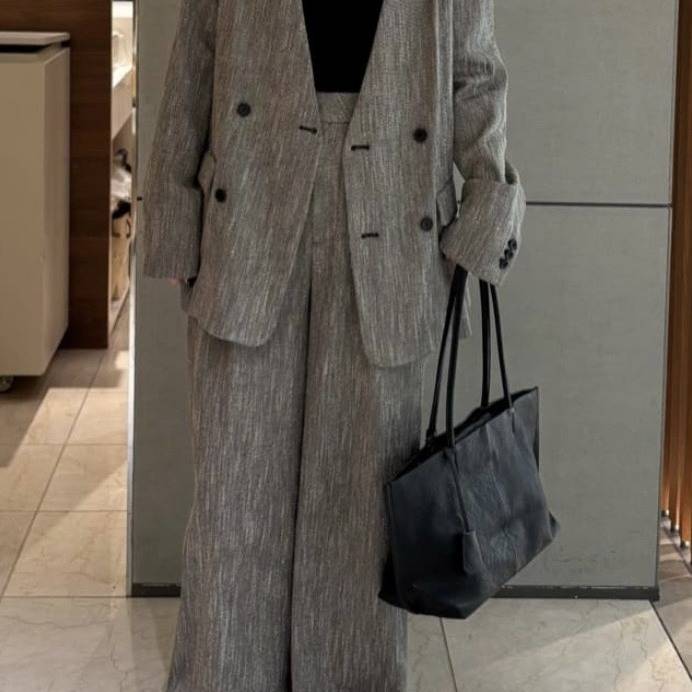 セットで着れば洗練されたきちんと感を、単品使いならデニムやカットソーと合わせて抜け感のある着こなしも楽しめるセットアップです♫