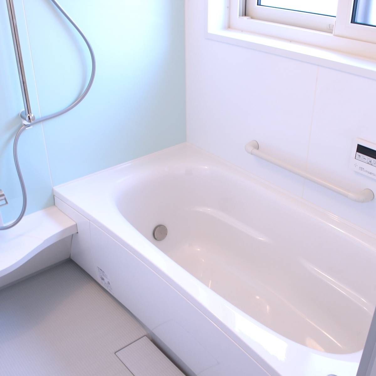 水色や青、グレーなどの寒色系は、清潔感があってバスルームに取り入れやすい色ですよね。