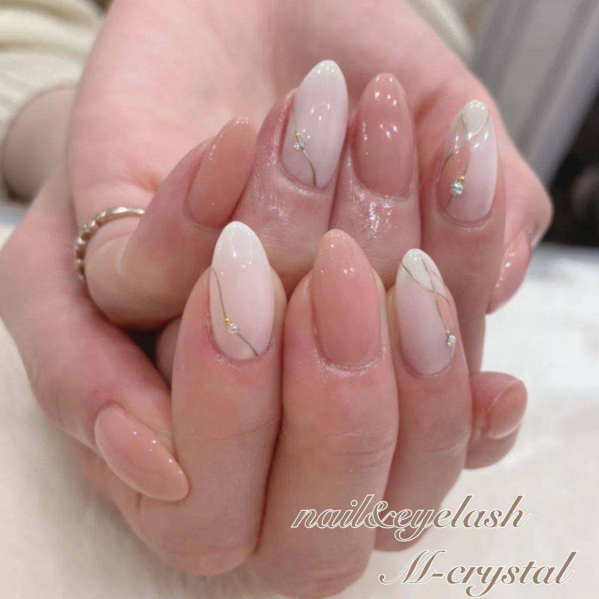 春におすすめのヌーディーピンクネイル④ビジューをのせて特別感を演出
