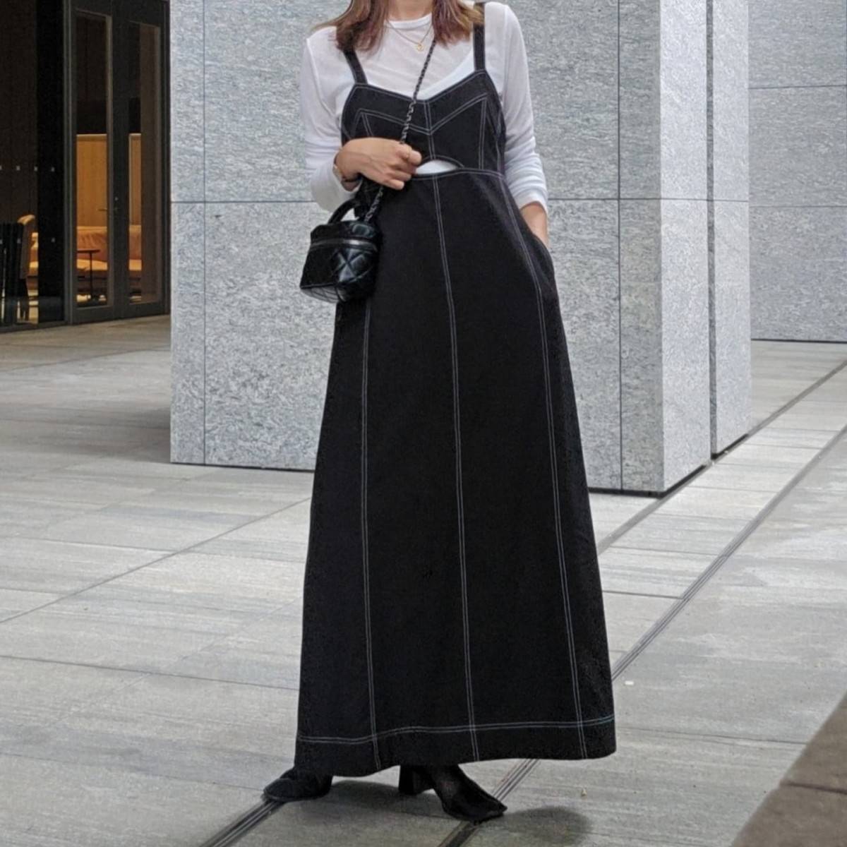 マキシ丈でIラインシルエットのアイテムを選ぶと、大人っぽく着られます♪