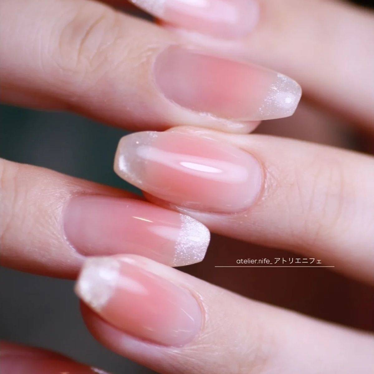 クリアピンクのグラデーションは指や爪が長く見えるので、ショートネイル派の方にもおすすめです。