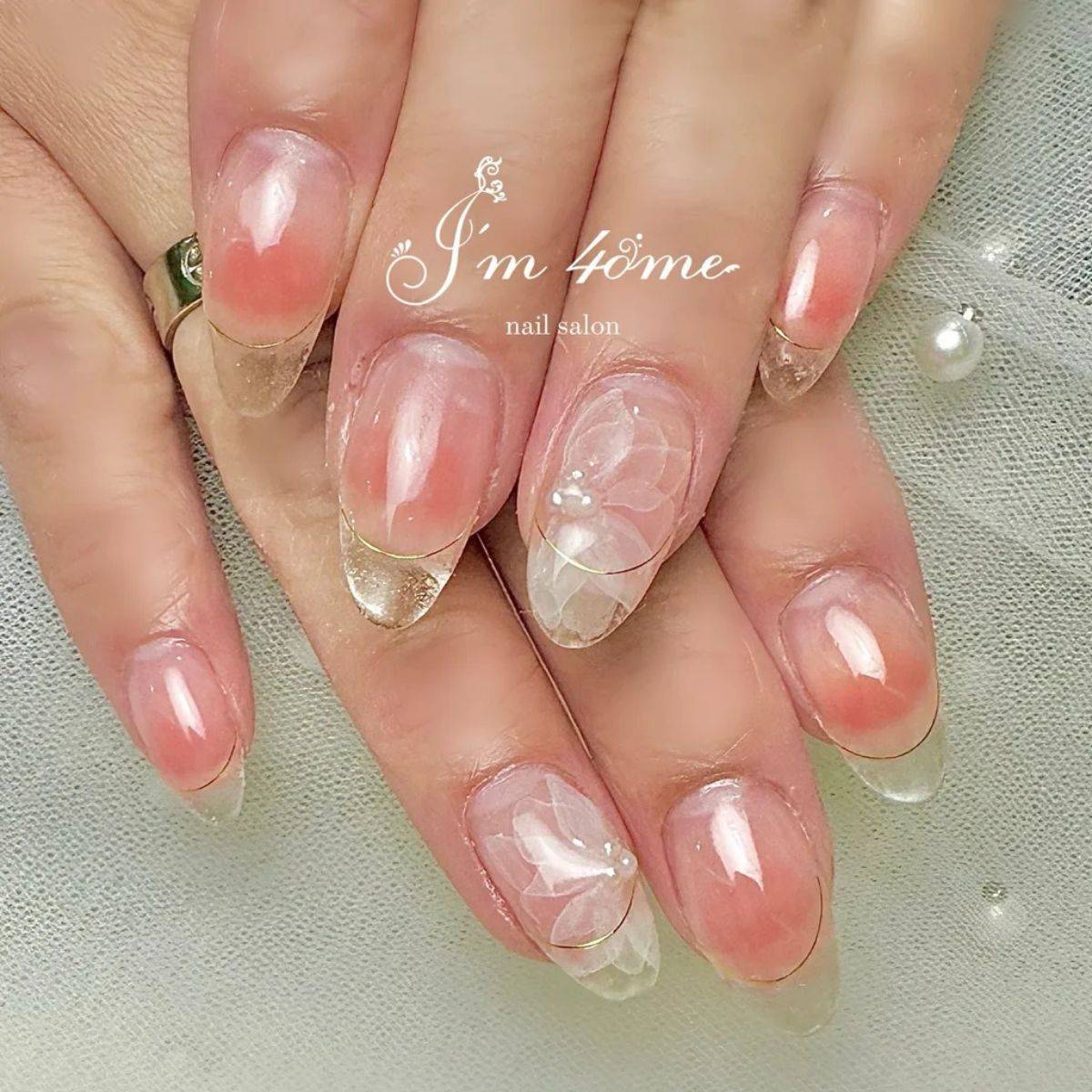 押し花が視線を集めてくれるので、爪が伸びても気づかれにくいメリットがあります。