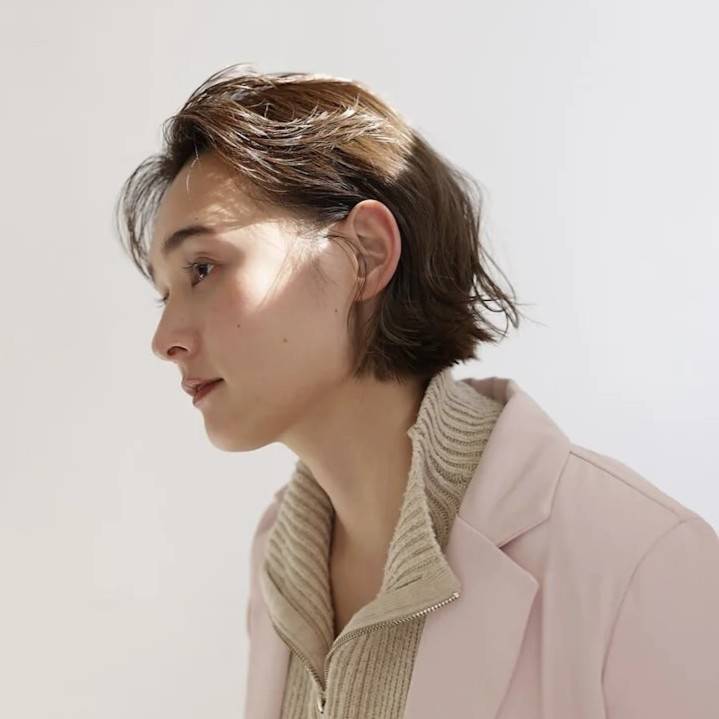 コンパクトな切りっぱなしボブは、ざっくりとかきあげるとハンサムな印象に垢抜けます。