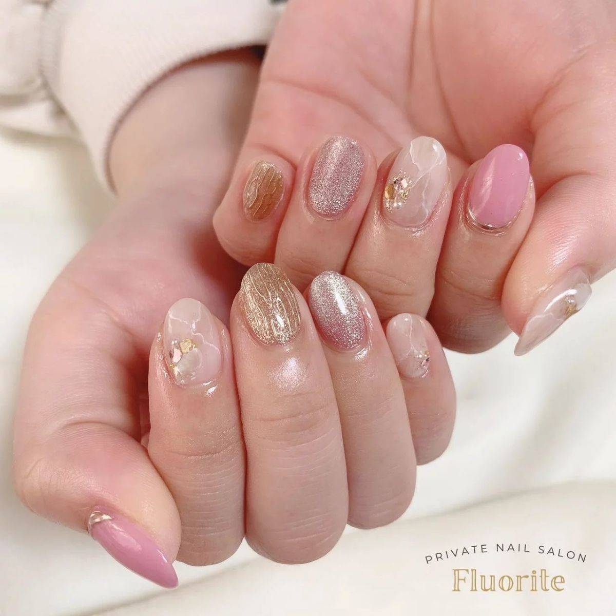 【4月編】おすすめのピンクゴールドネイル▶︎天然石のようなニュアンスで春っぽく
