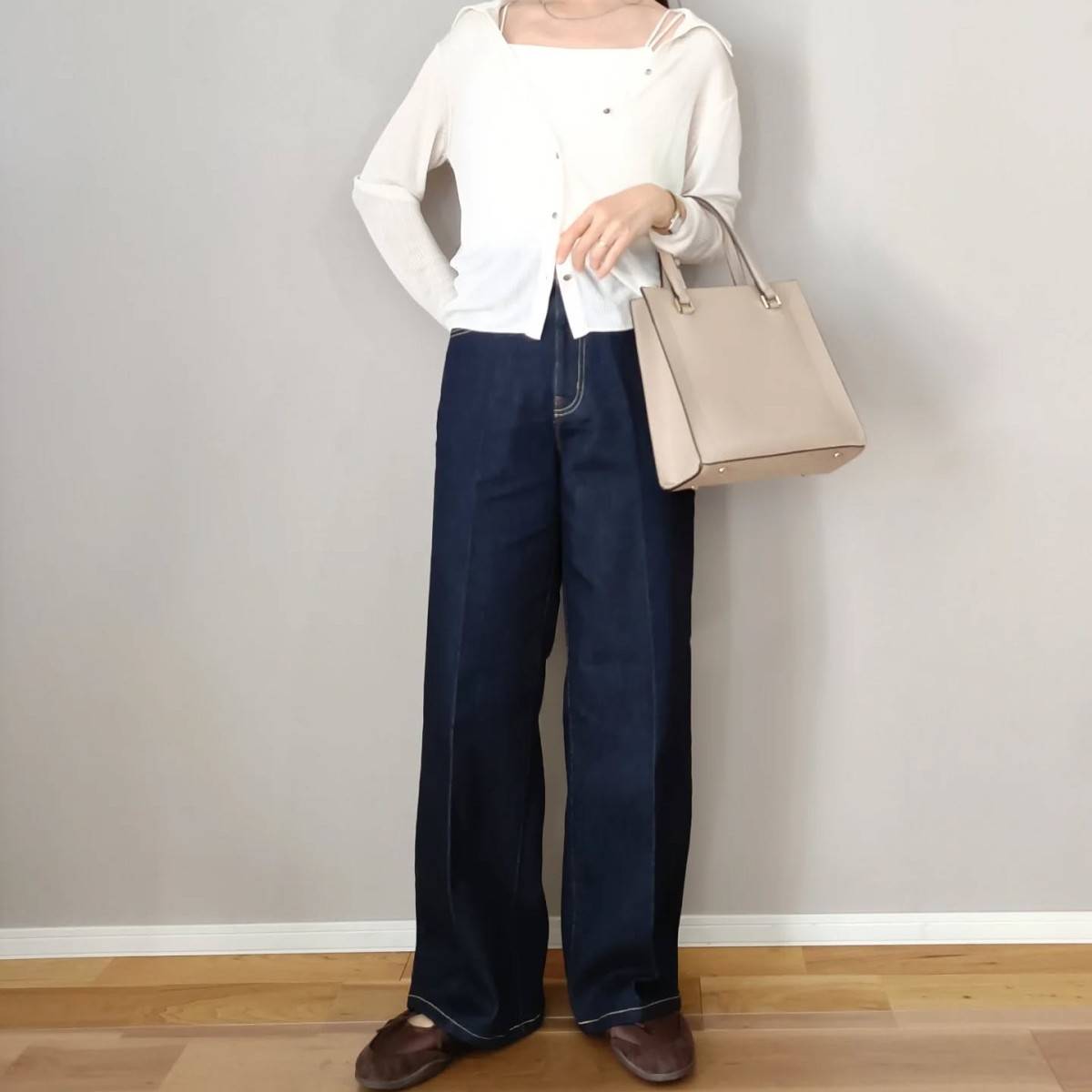 白カーディガンとデニムパンツは、毎年春に着ている定番コーデ!
