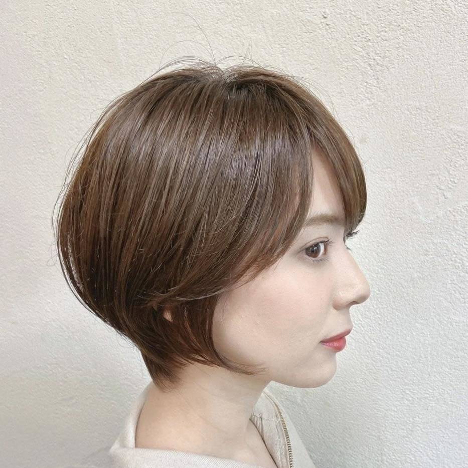 ひし形シルエットのショートは、若々しく見える髪型なので、大人女子におすすめです。
