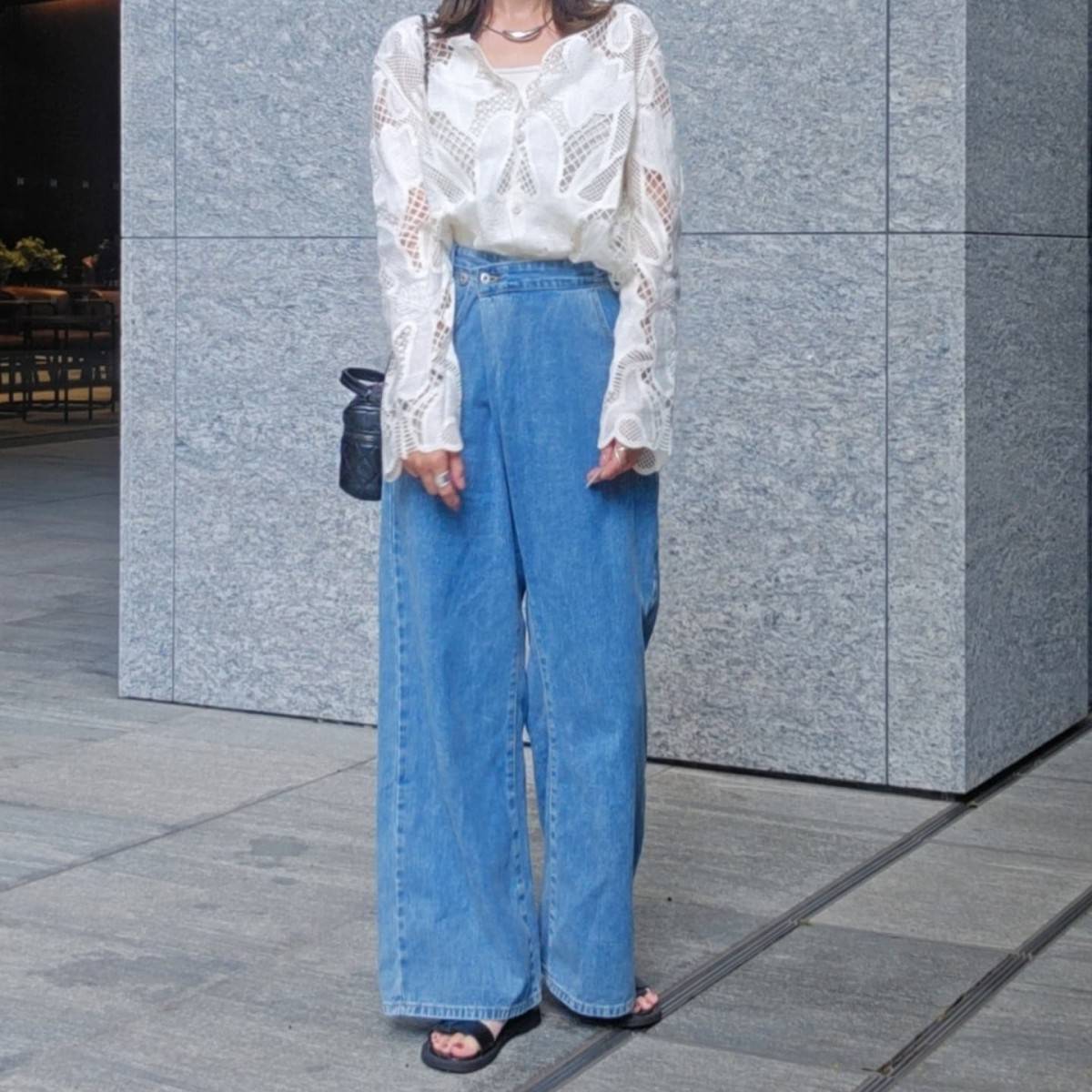【春編】垢抜けるデニムパンツコーデ⑤レースブラウスを合わせる♡