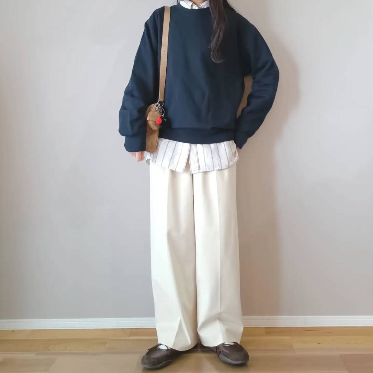 【4月編】大人可愛いパンツコーデ⑤スウェット×シャツの重ね着にチャレンジする♡