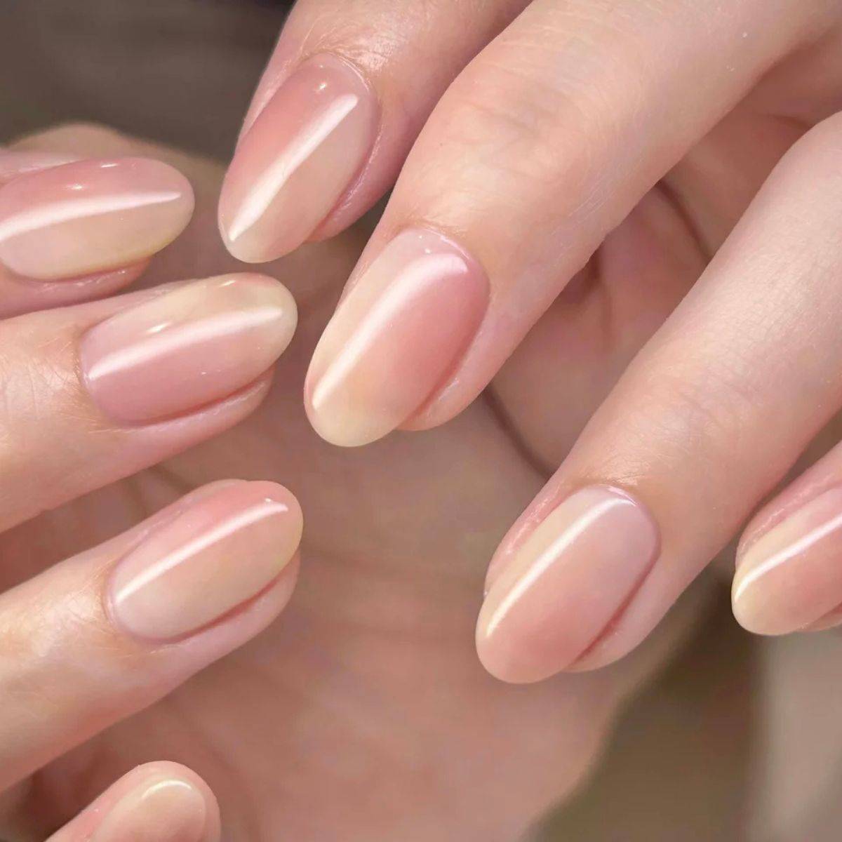 ヌーディーピンクのネイルは、ちゅるん感たっぷりに仕上げることでより魅力が引き立ちます。