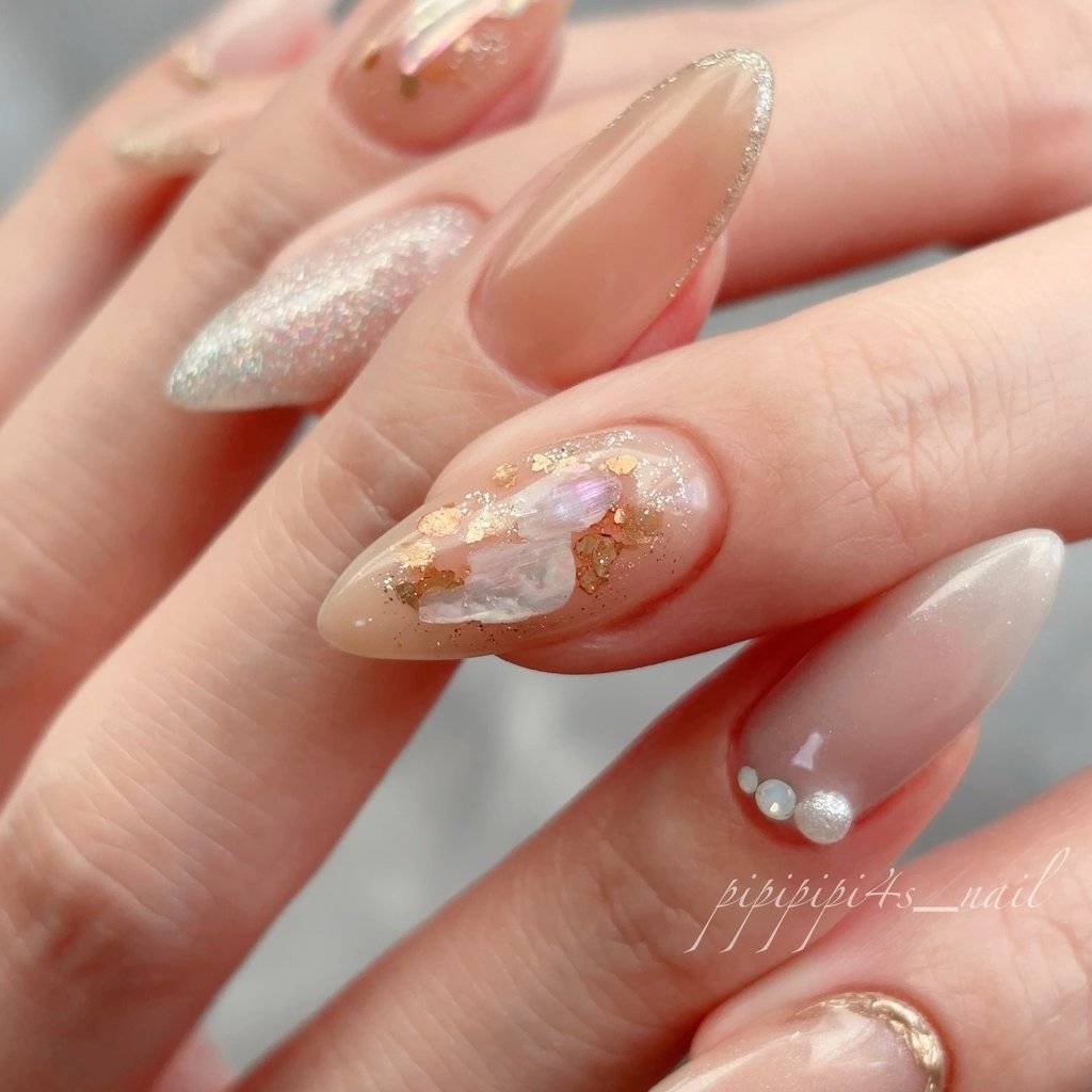 【4月編】おすすめのオレンジベージュネイル▶︎シェルを埋めた透明感ネイルへ