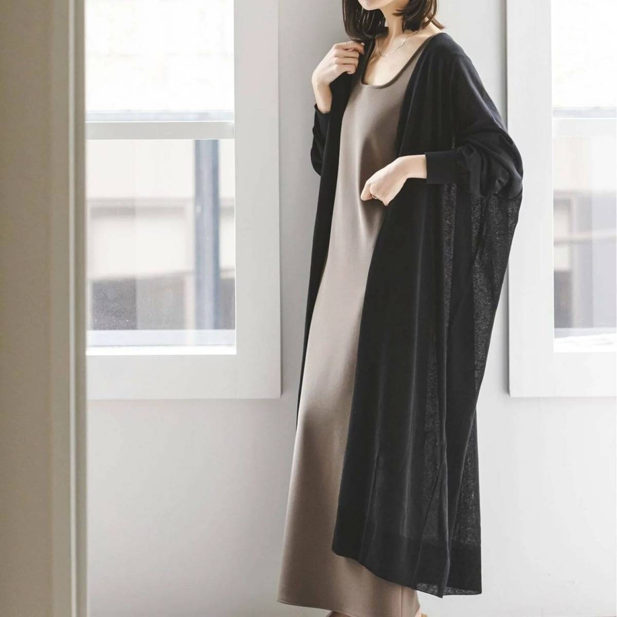 さらりとした質感のカーディガンで、2026年春にも着やすいです。