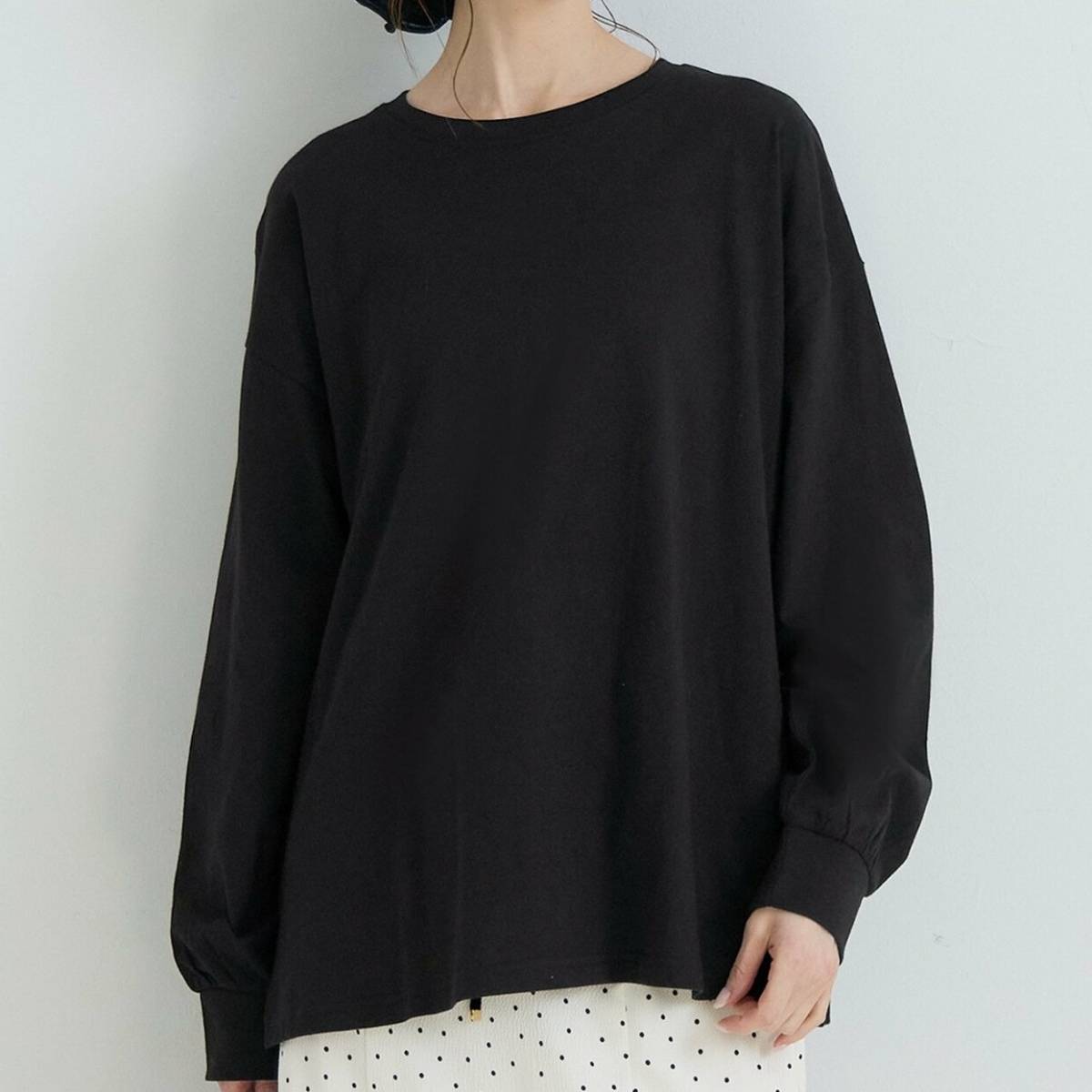 こちらのシンプルなデザインのビッグシルエットトップスは、適度なゆるさが◎