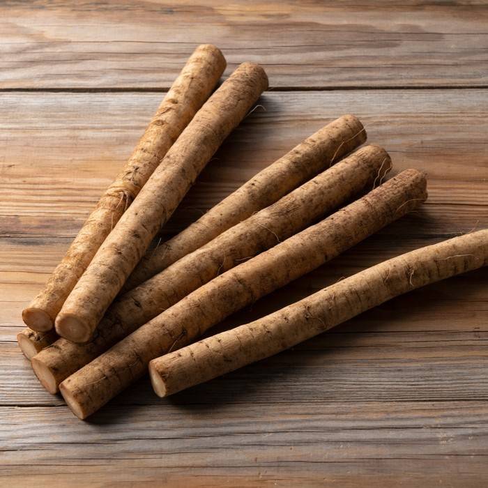 皮をこそげ落としたごぼうを、幅2mmの長さ4cm程度に切ります。