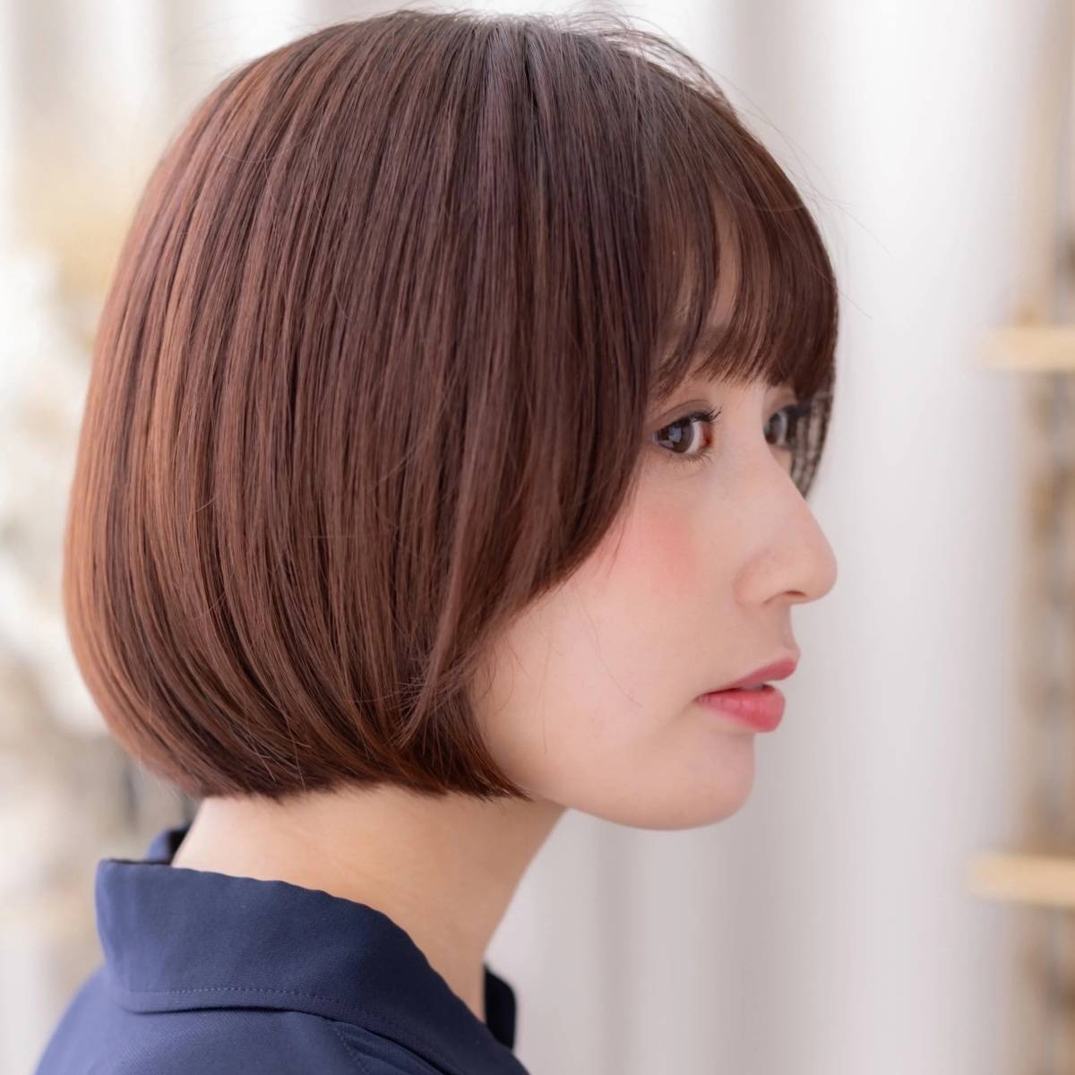 こちらのボブは、ヘアカラーをローズブラウンにしているところもポイント!