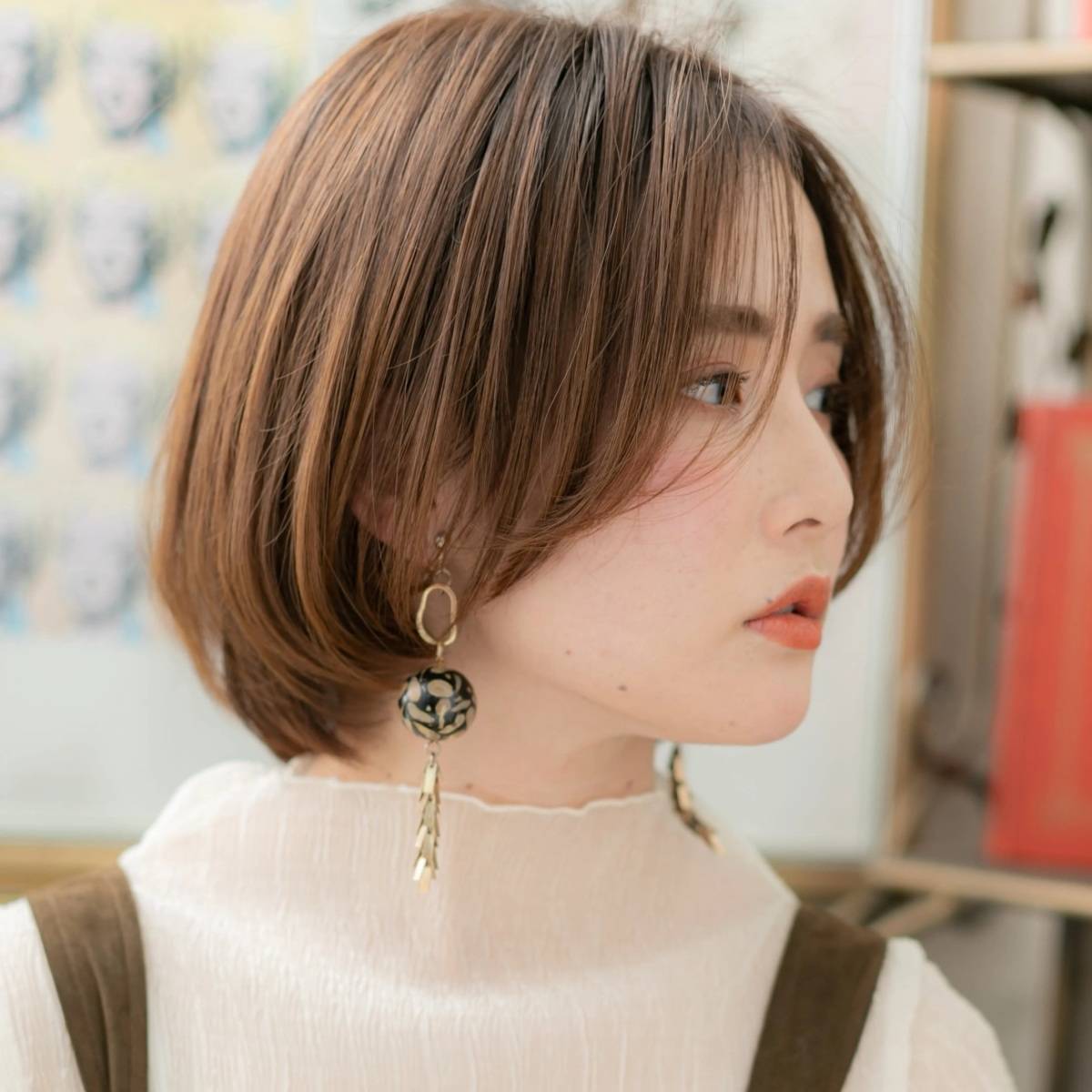 こちらのボブは、髪にツヤが出やすい暗めのココアブラウンカラーにしているところが特徴♪
