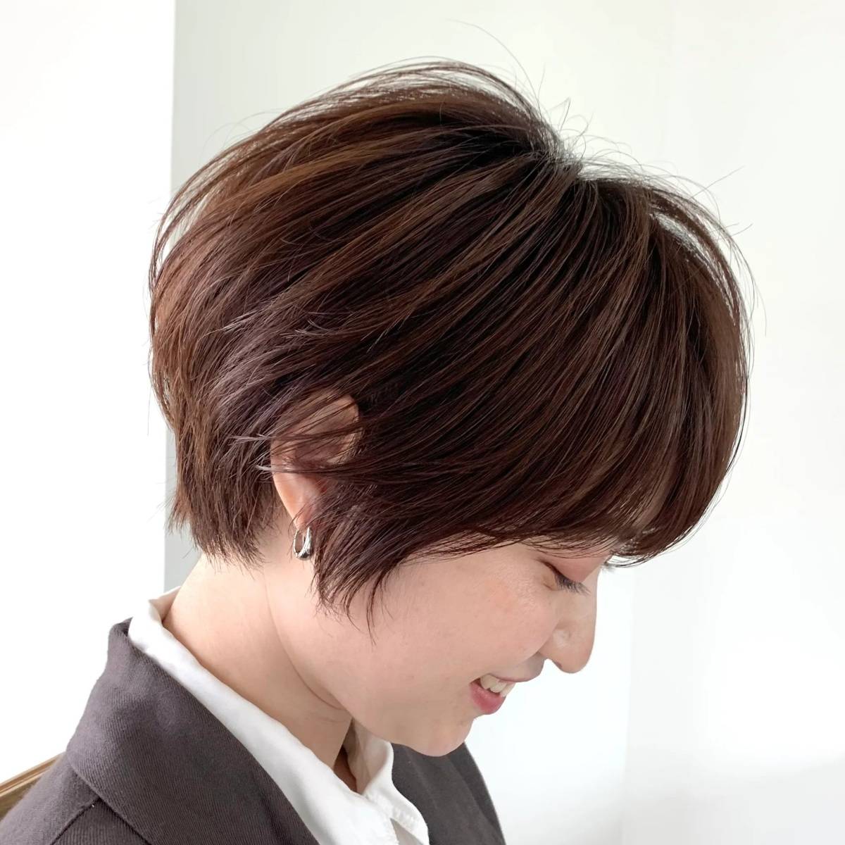 シルエットに丸みがあるショートヘアは、若々しく可愛らしい雰囲気を作ることができます。