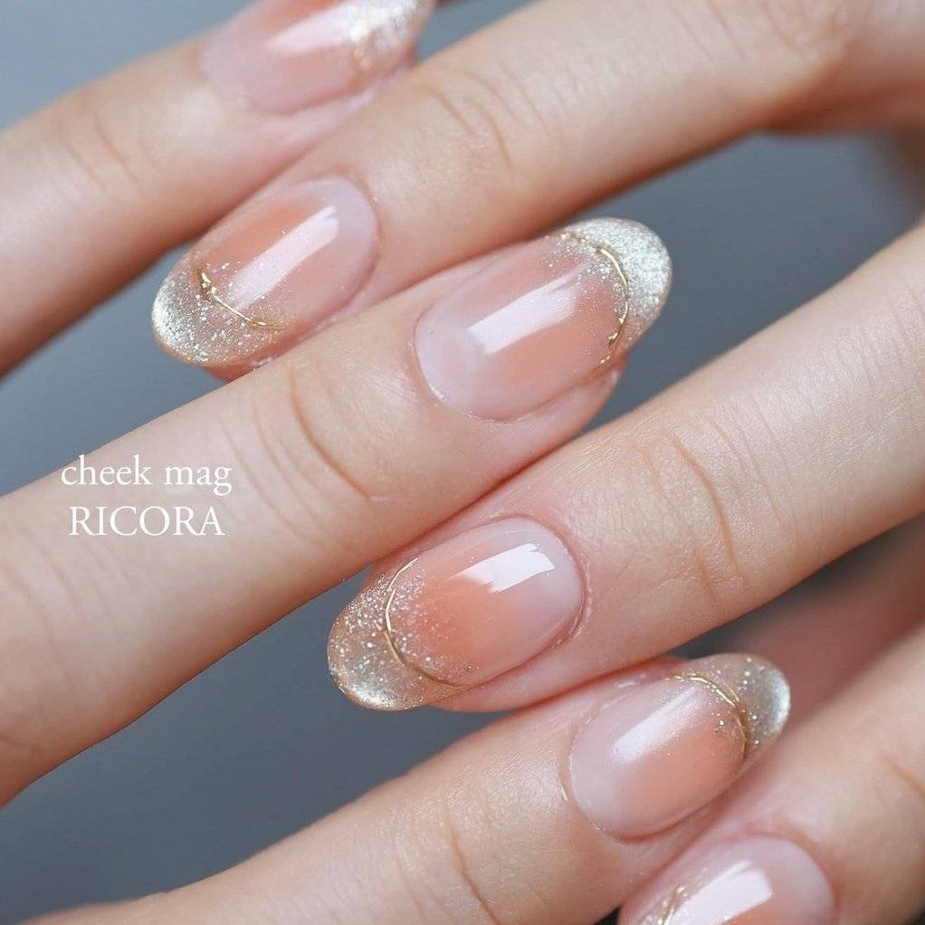 さらに、爪の先端にゴールドのシェルやラメを埋めると、夏先取りの晩春ネイルが楽しめますよ。